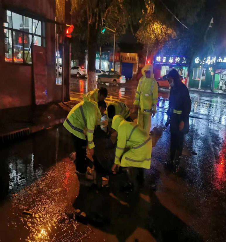 防汛期间,城中区市政公用服务中心,按照《2022年城区防汛抢险应急预案》要求,各防汛抢险小组立即启动应急预案,迅速对安全度汛工作进行安排部署,开展城市应急排涝工作,组织防汛人员48人,出动防汛车辆5台 ,出动管道疏通车1台,抽水泵3台。面对险情,防汛人员冒雨坚持在防汛排涝第一线,强化市政和房屋建筑行业巡查频次,并时刻关注地下通道、重点路段、低洼易积水点位和在建工地深基坑情况,全力保障人民群众出行安全。