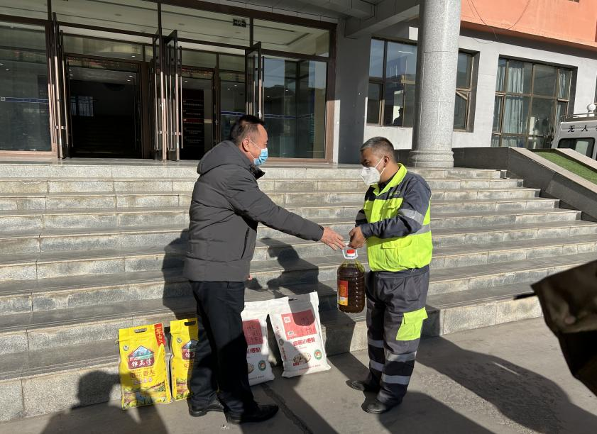 声声问候显真情,句句祝福暖人心,支部前往困难群众工作单位,与此次的慰问对象,负责值守明昊路环卫公厕的韩某与南川东路一组清扫员郭某面对面交流,详细询问他们的身体健康状况和家庭生活情况,感谢他们不怕脏不怕累,用朴实的劳动履行环卫职责,为建设美丽西宁幸福中区付出了辛勤的汗水,鼓励他们克服困难,保持积极的生活态度,叮嘱他们工作中要注意防寒保暖,做好个人防护,并送上大米、面粉、食用油等节日慰问品,祝愿他们度过一个欢乐、祥和的新春佳节。