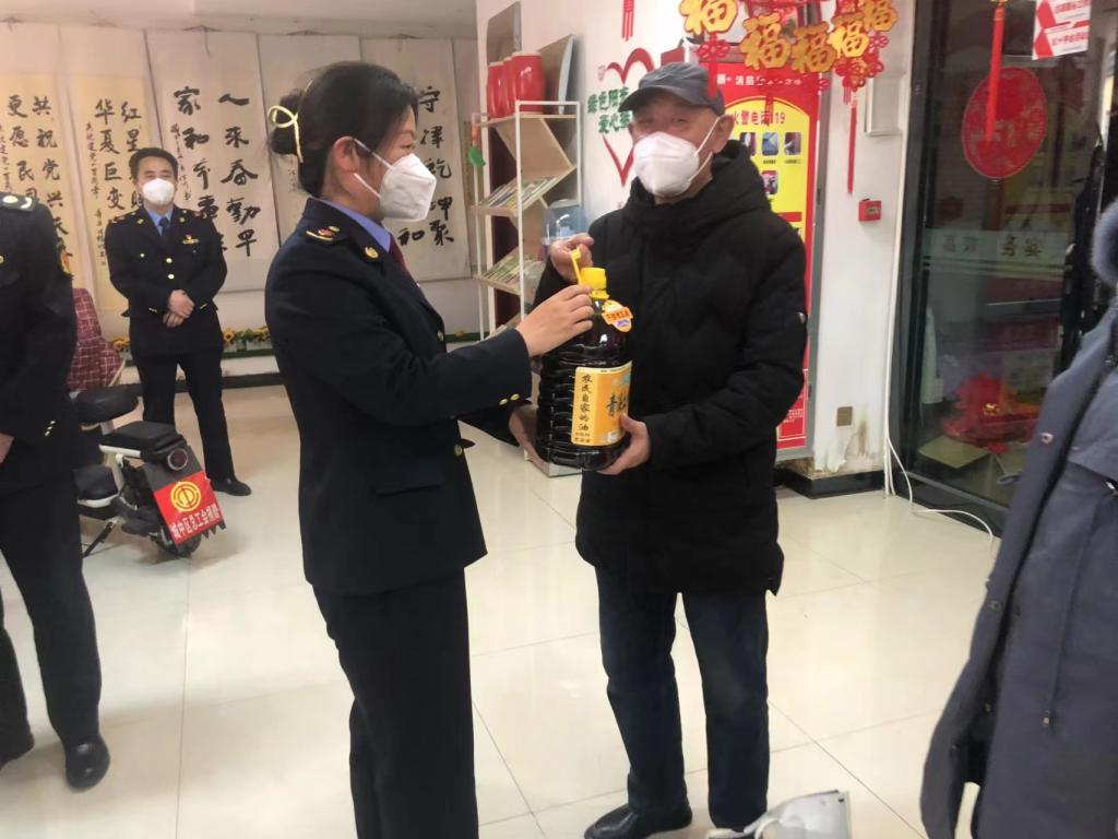 活动现场,党员群众围坐一起,话衷肠诉心声,第二党支部党员围绕如何挑选“年货节令”食品、烟酒商品质量甄别、家用燃气安全注意事项等,对社区群众展开了深入浅出、通俗易懂的讲解,提醒他们在节日期间增强防范意识、谨防消费陷阱,树立健康、理性消费观念。同时,详细了解现场群众的身体、生活状况和家庭困难情况,认真听取他们的诉求,记录生活所需,叮嘱他们保重身体、外出加强个人防护、有困难及时向组织反映,并鼓励他们在新的一年里保持积极向上的生活态度。座谈交流后,二支部党员联合社区工作人员积极组织辖区经营户,向社区困难群众开展捐赠活动,将米、面、油等慰问品送至了15户困难群众手中,并表示今后基层市场监管部门将不断优化服务,强化监管职责,不断顺应群众期盼,踏踏实实解决问题,切切实实做好服务。