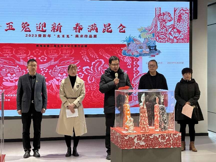 活动共有两项议程,一是由青海省文化馆主办的“玉兔迎春 春满昆仑”2023年癸卯年“生肖兔”美术作品展在“美林教室”展出。二是为城中区教育系统第二批12个特色工作室授牌。