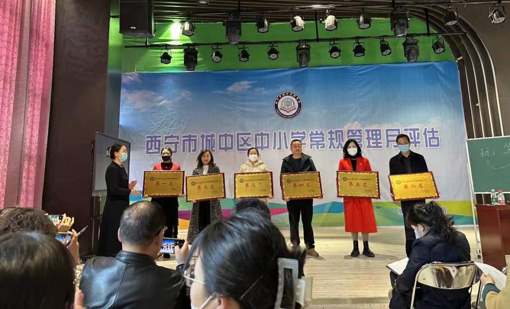【第四环节)公布评估结果。城中区教育局党组书记、局长为前六名谢家寨小学、南川东路小学、沈家寨小学、龙泰小学、北大街小学、华罗庚实验学校(小学部)颁发奖牌。