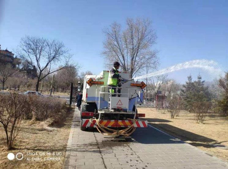 去冬今春,雨雪稀少,加之春季干旱多风,水分蒸发量大,城区绿化苗木墒情有所下降,出现萎蔫干旱现象。同时春季气温回升快且极其不稳定,对苗木进行适时浇灌可有效降低地温,延缓苗木发芽,使其免遭晚霜和倒春寒的危害。针对这一情况,我中心坚持“三早”原则,早部署、早行动、早清除,结合工作实际,组织人员提前安排浇灌车、洒水车、喷雾降尘车部署到位,对辖区绿地开展绿地灌溉工作。