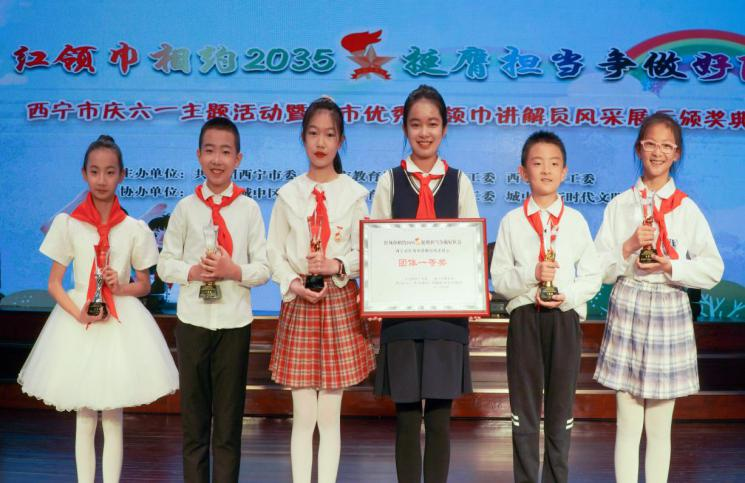 为深入学习贯彻党的二十大精神和习近平总书记关于少年儿童和少先队工作的重要论述,贯彻落实《中共中央关于全面加强新时代少先队工作的意见》,进一步聚焦政治启蒙和价值观塑造,传承红色基因,增强少先队员光荣感。近日,由共青团西宁市委、西宁市教育局、西宁市关心下一代工作委员会、少先队西宁市工作委员会主办,共青团城中区委、区少工委、城中区教育局承办的“红领巾相约2035 挺膺担当争做好队员”西宁市庆六一主题活动暨全市优秀红领巾讲解员风采展示颁奖典礼在西宁市城中区新时代文明中心举行。