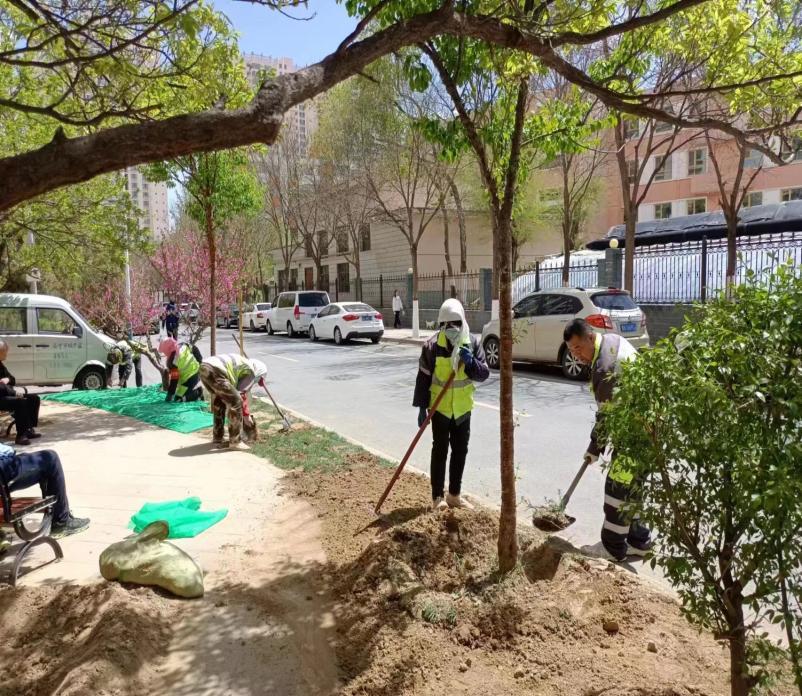 增绿护绿构建绿色景观。为进一步提升城市绿化景观效果,打造优美的城市绿化环境,近期,中心聚焦城区缺株垄断、黄土裸露等问题对标对表,抢抓整治时机,在经过前期详细摸排后,对辖区公共游园、绿地内裸露斑秃地块现象进行专项整治,全面提升公园“颜值。按照“缺什么、补什么”的原则,制定了“补、并、栽、铺、围、盖”养护作业方法,做到“道路延伸到哪里,绿化就跟进到哪里”,切实做到全覆盖、无死角。合理选择每块裸露地面整治方式,对缺株断档的绿地进行苗木补植,对斑秃的草坪进行补种,裸露地位于绿地内的,恢复为绿地,以周围现有的植物品种、规格、栽植密度为标准进行补植;为避免季节性裸地产生,地被植物以绿篱、常绿草坪为主,局部点缀宿根或时令花卉。截至目前,在辖区长青园、青唐城遗址公园、新民街绿地、南川西路、南京路等绿地、绿化带内种植紫叶矮樱、丁香、金叶榆、黄杨等绿篱18463余株、各类宿根植被2445株、整地6544㎡,播种草籽550公斤,通过合理的植物搭配,有效提升市区绿化效果,增添绿色生机,为广大市民提供更优质的生活环境。