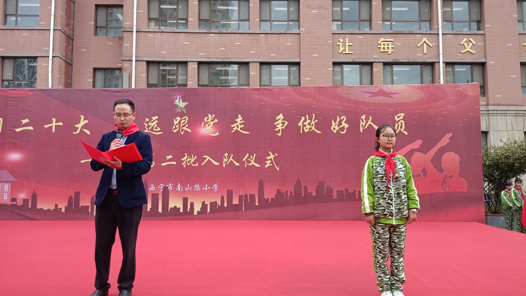 活动现场,即将入队的孩子们,在鲜艳的少先队队旗的引领下整齐列队,区人武部的官兵及区退役军人事务局工作人员逐一为新入队的孩子们戴上鲜艳的红领巾,捐赠革命故事图书,新入队的少先队员代表为区人武部的官兵佩戴红领巾并敬献鲜花致敬。随后,区退役军人事务局党组书记、局长滕志刚同志,向孩子们致以节日的问候,并向新入队的孩子表示了热烈的祝贺,区人武部的官兵为新入队的少先队员宣讲了“人民军队的优良传统”,传承红色基因,激发孩子们崇尚军人职业,热爱人民军队的激情和热情。活动中,区人武部的官兵及区退役军人事务局工作人员与孩子们共唱“中国少年先锋队队歌”,把此次活动推向了高潮。