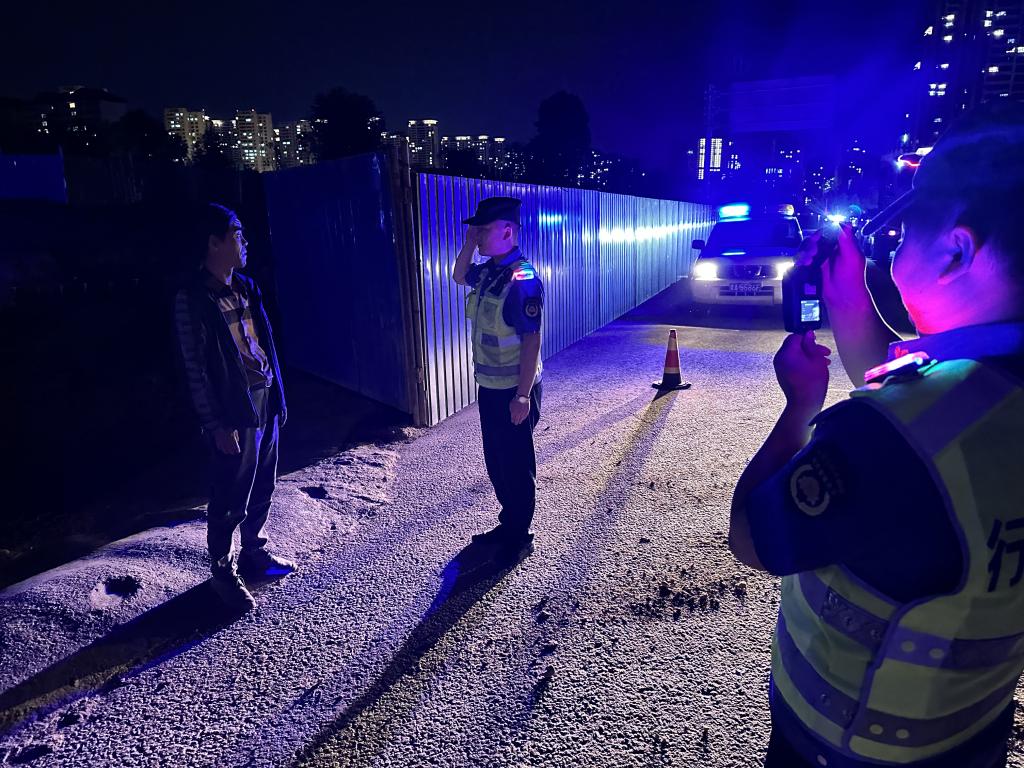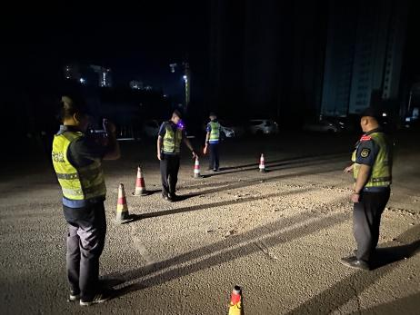 本次演练主要模拟夜间巡查发现和处置道路污染的场景。演练开始前,组织夜巡队全体队员召开应急演练培训会,并将队员分为巡查组、调查取证组和文书制作组,检查队员着装是否规范、执法记录仪是否开启、执法文书是否携带齐全等。