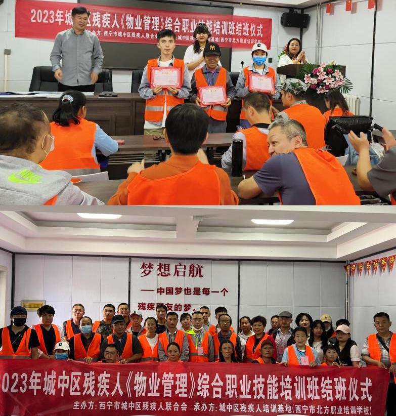 近日,城中区残联委托西宁市北方职业培训学校举办的《物业管理》综合职业技能培训班圆满结束。在结业典礼现场,57名学员全部通过了理论和实操考试,城中区残联的工作人员和北方职业培训学校的老师们为学员们颁发了结业证书,并为4名优秀学员颁发了荣誉证书。