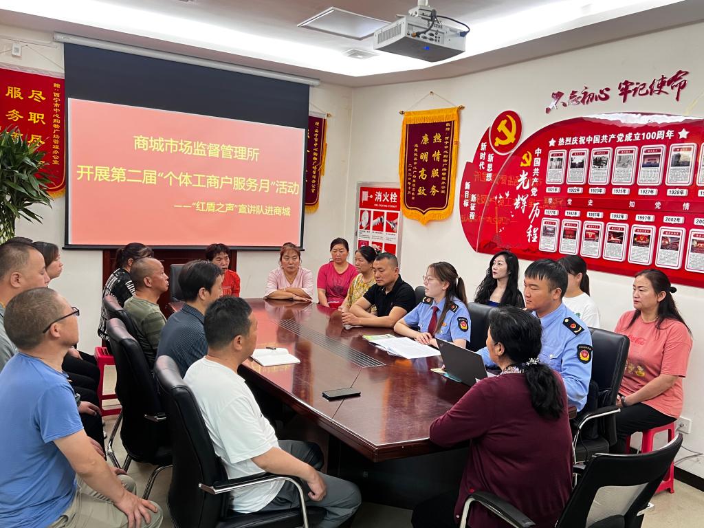 小阵地凝聚服务群众“大能量”。结合第二届“个体工商户服务月”活动,“红盾之声”宣讲队依托中心广场开办单位党员活动阵地,组织新设立经营主体开展法律法规培训会,提前告知常见易发的违法行为;定期了解企业发展情况,听取企业问题诉求和意见建议,完善“一企一档”,有针对性地给予市场准入、许可指导、诉求调解、信用修复等指导帮扶;针对发展中的痛点、难点、堵点,开展各类讲座、专家答疑,全力解疑纾困,创新打造无处不在、无事不扰、无微不至、管服一体的服务新模式。党员经营户老李说:“工作人员变‘问需’为‘找需’,为我们企业及个体工商户提供‘菜单式’政策宣讲解读和‘保姆式’代办代跑服务,真是太贴心了!”截至目前,宣讲队已累计开展培训3次,上门服务50余次,主动解决“急难愁盼”问题6件。