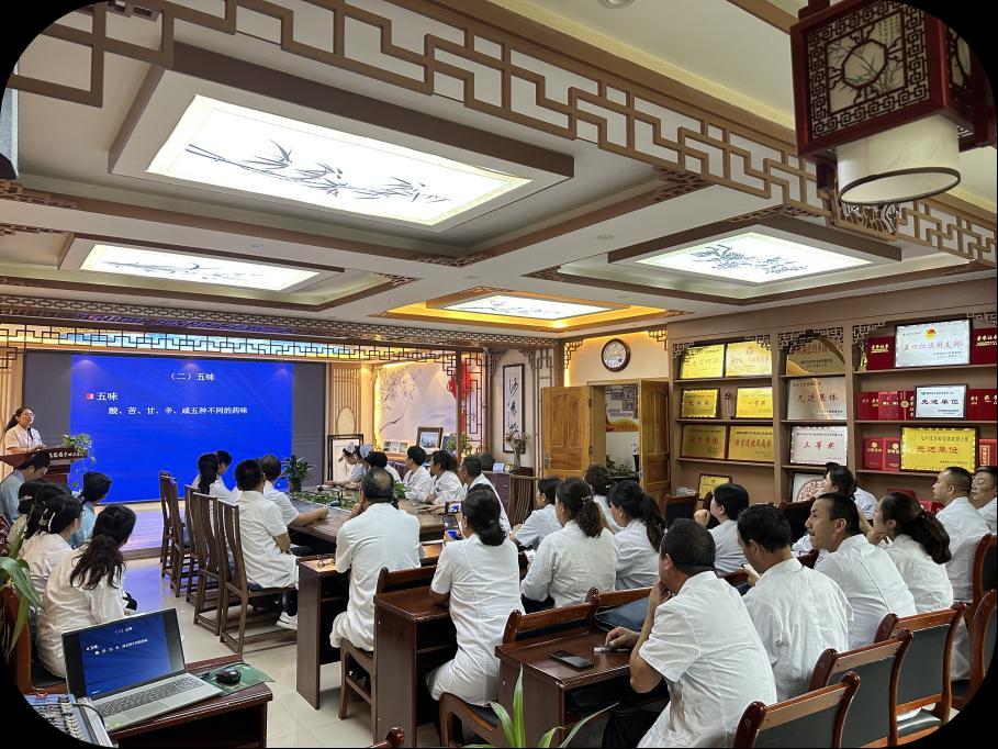 活动一中医中药润书香,四气五味传知识。“凡药之用,或取其气,或取其味……或取其所生之时,或取其所生之地”为营造学中医、爱中医、用中医的氛围,中藏医科主任李明娴医师为大家讲授《中药的性能》,首先以药物的性味和效能为切入点,引出了本次的主题,分别从四气五味、升降沉浮、归经、配伍禁忌、剂量等五个方面向大家展示了常用中药知识,教授如何辨识这些中药材,对中药材的气味、形状、功效有了直观的感受,进一步夯实了中医理论知识,起到“温故而知新”的作用。