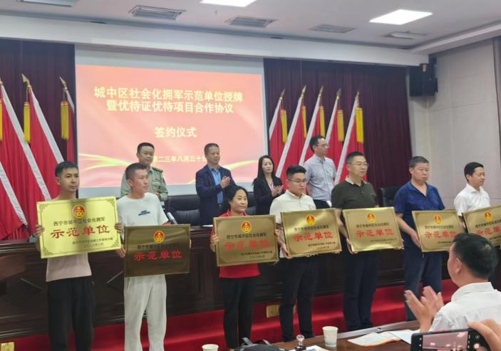 为发扬拥军优属的优良传统,推进军人荣誉体系建设,近日,城中区退役军人事务局在城中区政府会议室举行2023年城中区社会化拥军示范单位授牌暨“优待证”优待项目合作协议签约仪式。市退役军人事务局及区各有关部门负责同志、合作单位、退役军人代表出席签约仪式。