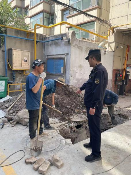 打好污染防治攻坚战。督促辖区施工企业严格落实大气污染防治各项目标措施,做好施工现场的扬尘治理工作。强化露天烧烤的整治管控,落实网格化常态巡查管理,依法取缔露天烧烤及其他餐饮流动摊点,要求烧烤门店必须入店经营,发现餐饮流动摊点并立即进行劝离22处;加大巡查力度,对露天焚烧树叶、垃圾等行为,及时进行制止,做到不点一处火、不冒一处烟,有效防止大气污染。巡查中,执法人员发现营房巷派出所院内施工人员在无任何降尘措施的情况下开挖地面疏通下水道,且随意堆放土方,导致尘土飞扬,给空气质量带来负面影响。执法人员立即督促施工人员安排专人进行洒水降尘,并购买防尘网遮盖土方,最大程度降低施工对周边居民生活环境和生态环境带来的影响。