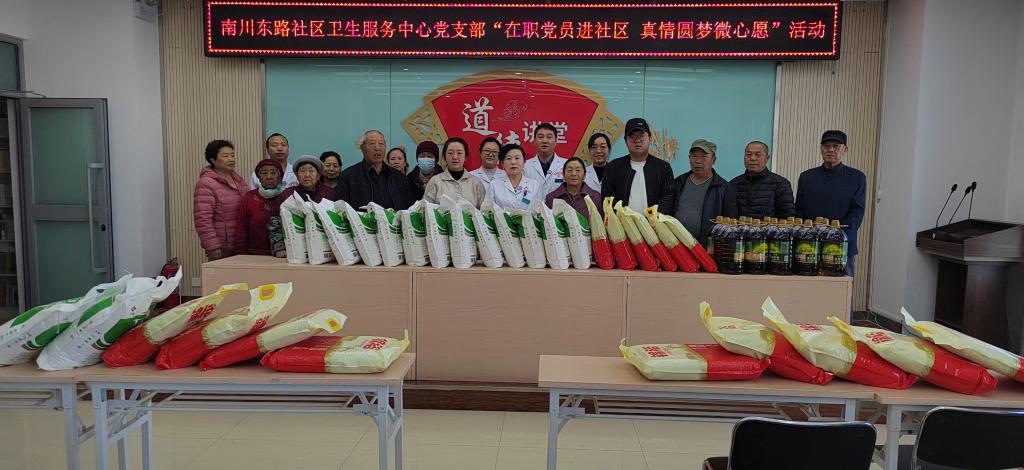 传递温暖,提升群众满意度。为扎实推进在职党员进社区志愿服务活动。2023年11月22日,南川东路社区卫生服务中心党支部在瑞驰社区开展“在职党员进社区 真情圆梦微心愿”活动,为15户困难家庭送去价值2700余元的米、面等物资,传递“心温暖”,让活动更有力度、服务更有温度。
