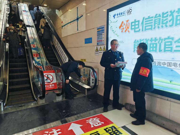 强化隐患排查,筑牢电梯安全防线。临近元旦,地下商城客流增多,电梯使用频率高,安全风险也随之增大。执法人员对3家地下商城的14部自动扶梯进行了专项检查。重点查看应急预案、电梯运行、现场警示标志是否完备、落实电梯管理规章制度、日常维护保养、定期检验和人员持证等情况。要求使用单位切实落实主体责任,加强日常检查和定期维护保养,及时消除安全隐患,确保节日期间电梯安全稳定运行,全力营造安全祥和的节日氛围。