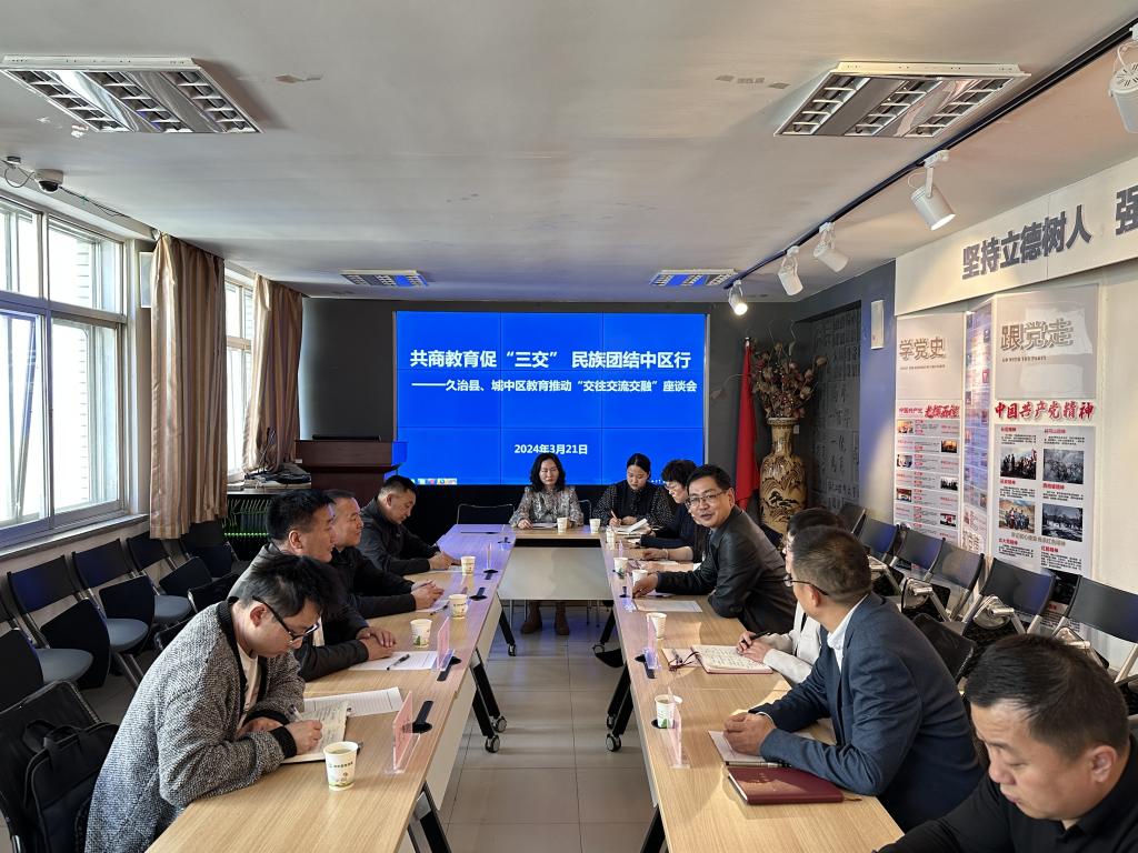 跨区联动,携手并进。2024年3月,城中区教育局与果洛藏族自治州久治县教育局以“共商教育促‘三交’ 民族团结中区行”为主题进行座谈,双方就深化两地教育协同合作、促进教育高质量发展进行友好交流。为进一步做好省内东部地区对口支援青南地区教育工作,城中区教育局每年选派13名教师赴青南地区开展支教工作,努力带动支教地区的教科研工作,促进薄弱地区教育均衡发展。目前已与河南县签订教育合作框架协议,同时与南京市鼓楼区教育局初步达成合作意向。经过座谈后,城中区教育局党组表示此次久治县的来访交流积极促进了两地教育合作开启新篇章,希望两地教育能够充分发挥各自优势,本着“联动协作、互补共赢、特色发展”的原则,对接优质教育资源,广泛开展交流互通,努力形成更加紧密的教育协同发展新格局。