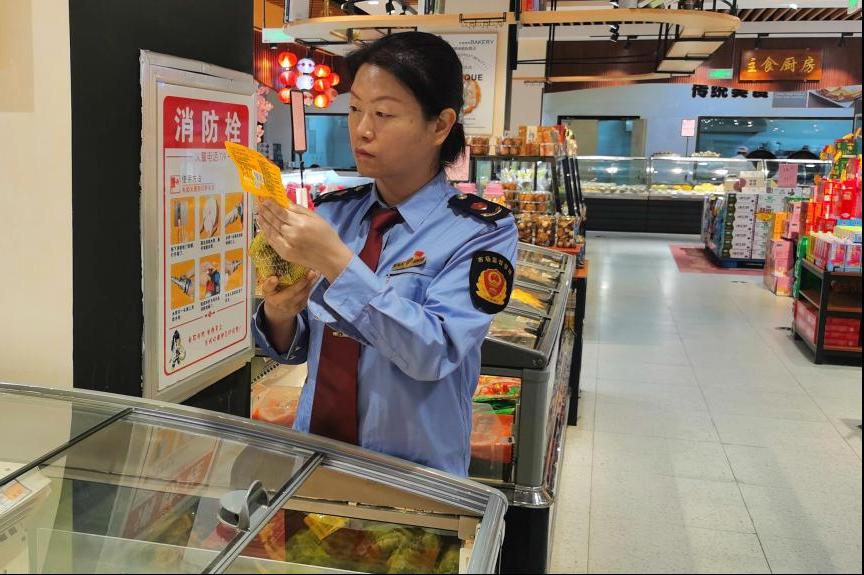 加强“粽”监管,严控流通领域风险。执法人员对糯米等产品食品标签是否符合规范、是否在保质期内、是否明码标价、生产经营单位是否落实索证索票和进货查验制度、经营单位冷冻存储设施设备是否正常运行并达到规定储存温度、经营单位的设备设施和经营场所是否整洁、预包装粽子有无破损、涨袋、漏气等情况进行了重点检查,严禁购销“三无”、变质等不符合食品安全标准的食品,确保维护市场秩序和消费者合法权益。同时,执法人员对在售粽子的礼盒包装也开展了检查,共检查经营主体86家,规范明码标价2家,以免虚有其表、价格虚高的“粽子刺客”扰乱市场秩序、造成消费者的损失。