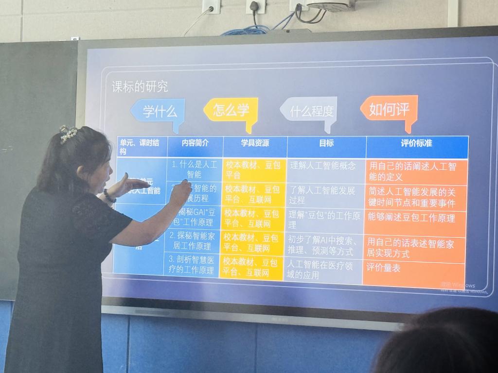 首先由冶文庆老师进行了以《“Yue”动人工智能,智享幸福生活》为主题的课程建设说课展示。这对课题中关于师生共建,进行基于课程标准的课程资源建设提供了一些思路,课题组成员对其中课标的研究进行了解读与分析,明确了“Yue”动人工智能,“Hui”向未来生活这一主题句,并对“Yue”“Hui”这两大关键字进行了拓展讨论,明确了目标,确定了思路。