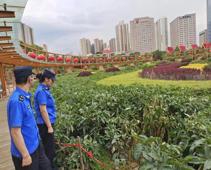 强化花卉(绿植)养护。日常巡查过程中,发现花卉(绿植)区域有坏株、枯株、少株等情况,积极联合广场管理部门进行补种、补栽,强化喷灌设施、花桥花街等花卉景观的管养,进一步提升城市品质。