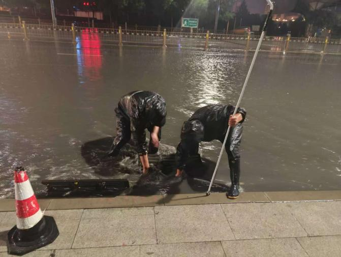 为最大程度防范降雨期间发生城市内涝,中区城管局组织执法人员深入辖区内各个容易出现积水的路段、地下通道和低洼区域,仔细摸排辖区内排水设施的运行情况,对雨水篦子是否堵塞、井盖是否完好、排水管道是否畅通等进行了逐一排查。对部分排水不畅的路面及时采取应急措施,疏通下水道井口杂物,针对发现的部分排水管道堵塞、井盖破损等问题,及时通知相关部门进行整改。