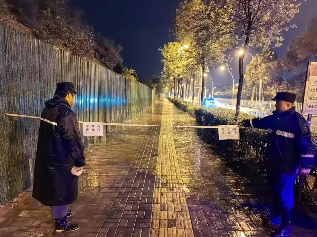 从山上下来后,队员们并未放松,继续在辖区内开展安全隐患排查工作,力争将工作做实做细。经排查发现,南川东路加油站、加气站山体滑坡检测点以及汽车贴膜装饰店等有滑坡危险的重点路段,对夜间过往行人存在较大安全隐患。队员们将情况反馈给街道办事处后,随即用A4纸打印警戒提示“有落石,请绕行”,并就地取材用胶带将警示标语全部“过塑”,又带着警戒带、宽胶带、剪刀等工具,立刻前往加油站。