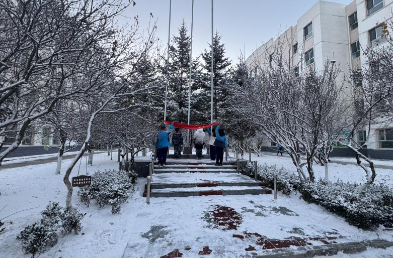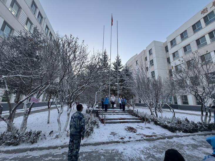 今冬的第一场雪悄然飘落,校园银装素裹。11月25日清晨,在激昂的出旗曲中,西宁市西关街小学的护旗手迈着整齐有力的步伐护送国旗至升旗台下。伴随着庄严的国歌,五星红旗冉冉升起,全体师生高唱国歌,表达着对祖国的敬意与热爱。