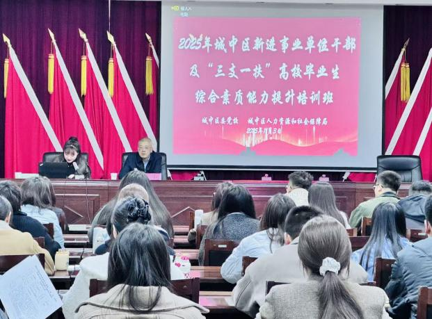 为全面落实习近平新时代中国特色社会主义思想,紧扣新时代党的建设总要求和党的组织路线,扎实推进高素质专业化干部队伍建设。近日,城中区组织50余名新进人员开展2025年度新进事业单位干部及“三支一扶”高校毕业生综合素质能力提升培训班,通过“理论+实践”“授课+研讨”“课堂+实地”的多元培养模式,提升新进人员的政治素养。