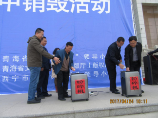 按照全国“扫黄打非”办的统一部署,近日,省“扫黄打非”办在新宁广场设立青海分会场,举办全国侵权盗版及非法出版物集中销毁活动。省文化厅及省“扫黄打非”工作领导小组相关领导出席了销毁活动并作重要讲话。我局文化市场综合执法大队及辖区出版物经营单位代表参加了此次活动。