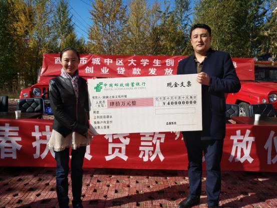 仪式上,城中区就业局、城中区大学生创业孵化基地及青海沃尔特创业投资有限公司联合中国邮政储蓄银行为获得青年创业小额贷款的青海润长虹商贸有限公司、圆融之旅文化发展有限公司等5家创业企业发放了150万元扶持资金。