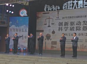9月16日,2017年青海省全国科普日活动在西宁中心广场启动,副省长王黎明出席活动并为2017年西宁市科普志愿者授旗。