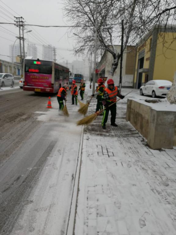 目前,扫雪除冰工作正在紧张有序的进行中。