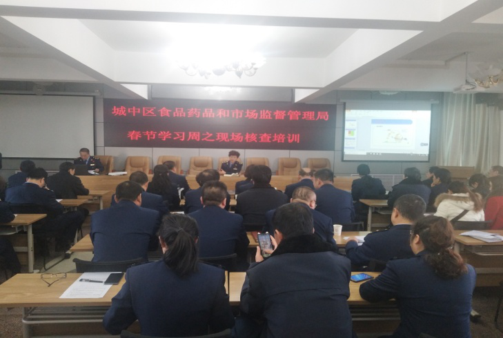 为进一步规范食品经营许可业务办理,提高全局干部职工的工作水平,提升依法行政能力,城中区食品药品和市场监督管理局于近日上午举办“食品安全+”培训班。各科室、所、队及市场巡查人员共79人参加了培训。