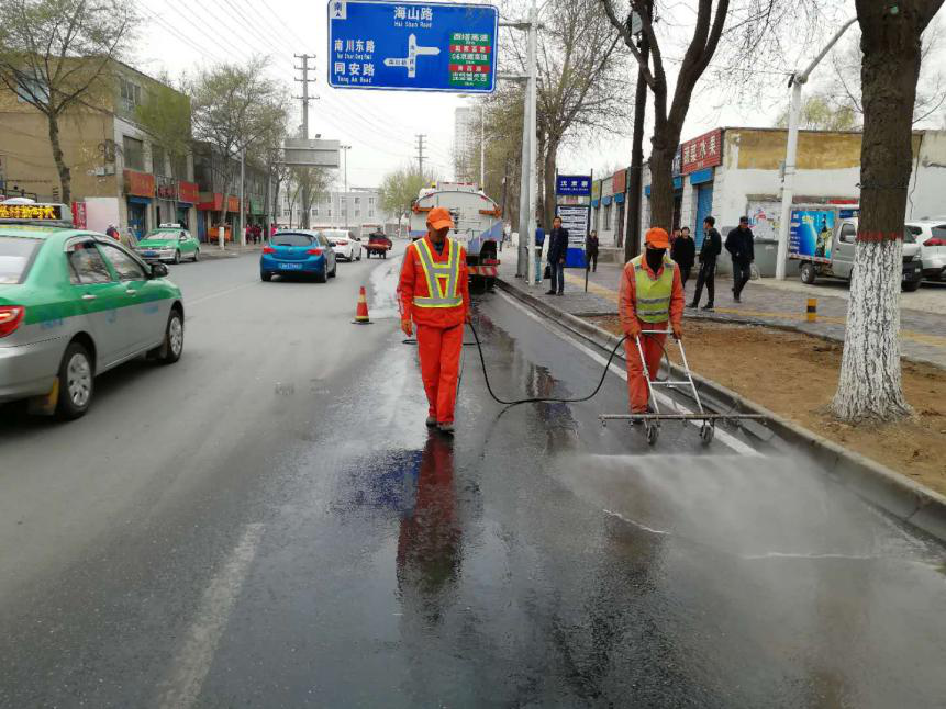 一是合理安排,统筹调配。根据天气变化及交通人流量的情况,科学合理的安排作业时间,避开交通高峰期,在刮风天气较多的情况下增加环卫作业车辆和作业频次,对辖区主干道开展洗扫、喷雾作业;针对无法开展机械化洗扫、喷雾作业的背街小巷等道路,调配小型环保高压冲洗车每车配备三名跟车环卫人员进行人工洒水、冲洗保洁作业,全面改善道路扬尘污染。