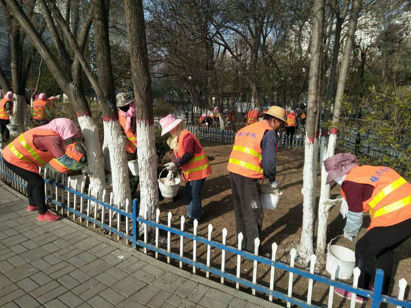 为保障涂白工作的质量和良好的景观效果,施工现场安排专人对涂白剂配置比例及树木涂白标准等技术环节进行严格要求,做到涂白的高度统一、均匀,达到美观一致的效果。目前,城区大街小巷行道树及各公园、游园、街头绿地、南川河道沿线景观树木已全面完成涂白工作,涂白后的树木换上了“新装”。