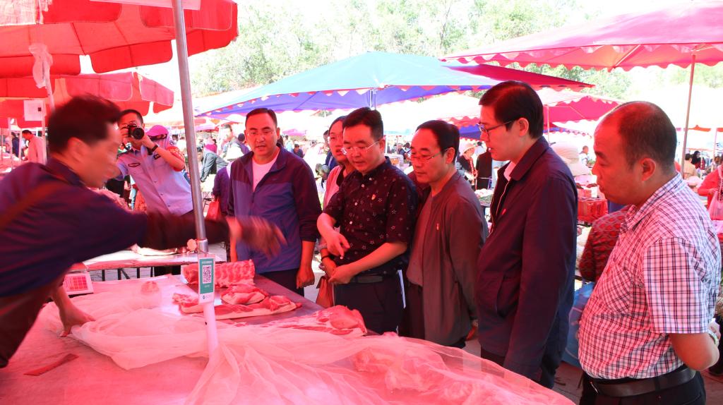 端午节临近,又恰逢少数民族开斋节,为确保节日期间辖区市场物资供应充足、价格平稳。近日,城中区区委副书记、区政府副区长带领相关部门负责人对辖区南川东路早市、北京华联超市、水井巷市场、中心广场、莫家街市场及平价商店进行实地检查。检查组一行仔细查看了各商超内商品的标价,并向相关负责人详细了解了商品的进货渠道和定价情况。就近期猪肉定价过高情况进行核查,要求市场、商场主办方积极协调、召开告诫会,明码标价,诚信经营。并对现场检查发现部分商家提供虚假票据问题当场要求停业接受调查处理。