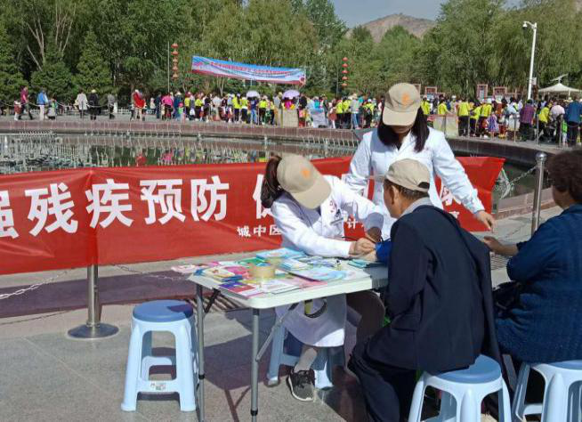 通过召开动员会、培训会,加强对辖区医务人员的培训,提升医务人员残疾预防工作业务能力,先后邀请青海省级专家对辖区社区中心、卫生院、村卫生室及社区卫生服务站67名相关人员进行残疾筛查工作的业务培训,并派出8人参加全国残疾预防项目的培训。同时,抓住重要时间节点如“家庭医生宣传日”“助残日”、“爱眼日”“爱耳日”“职业病宣传周”重大节日,将残疾预防有关内容全面纳入相关主题宣传活动,通过制作横幅、设立展板、发放宣传册等形式在公共场所进行义诊,普及有效控制出生缺陷和发育障碍致残、着力防控疾病致残、努力减少伤害致残、显著改善康复服务状况等四方面的核心知识,让公众了解各种致残风险,进一步使公众掌握预防残疾的方法和途径。截止目前,共计发放宣传册2000余份,接受1500多人次咨询。