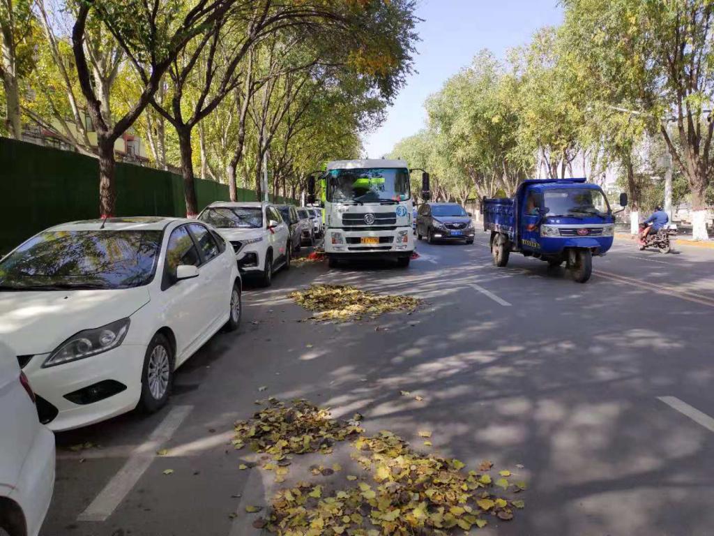 二是准备各种清扫工具——挤压车、垃圾车,遇到刮风下雨天气提前通知,保证人员、车辆及时到岗到位。在树木密度大的街区、车流量大的机动车道等,中心及时调整作业方式,充分发挥机械化作业优势,采取机扫加人工保洁相结合的作业方式,重点加大对落叶的清扫保洁力度,确保道路落叶得到及时清理。