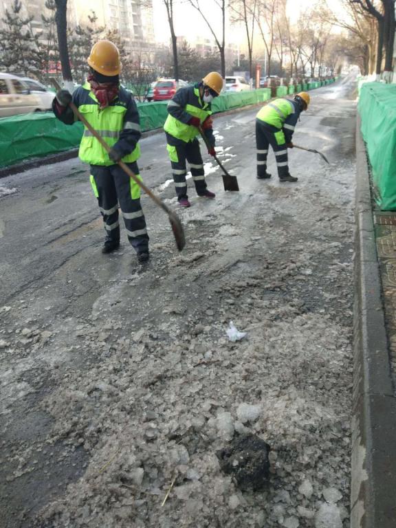 一是针对降雪天气,中心组织全体环卫工人,开展扫雪除冰工作,共出动一台大型机械扫雪除冰作业车辆、三台小型扫雪车辆及一台融雪剂抛洒车辆对辖区开展扫雪除冰作业,对政府机关、学校周边、医院及公交车站等区域加大扫雪力度及保洁频次,保障行人车辆的出行安全;二是组织人员加大辖区主次街道、背街小巷、背阴路面等市政基础设施隐患巡查与路面积冰清除保洁工作,对存在破损的路面地砖、井盖等市政基础设施进行及时更换;同时,对背阴区域的路面积冰进行人工破碎并清理保洁,及时消除安全隐患。三是根据天气变化及寒假假期的到来,中心组织人员,佩戴“小小红标”加强游园绿地及河道沿线的安全巡查工作力度,对降雪天气出现的断枝、折枝及时进行清理,对河道防火安全增加巡查频次,有效预防冬季安全隐患,保障冬季安全生产工作稳步、有序的推进。