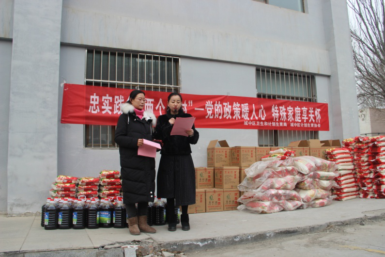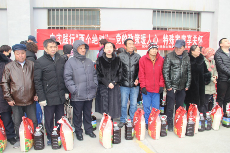 为认真贯彻落实党的十九大精神,推进“一优两高”战略部署,在改革开放四十周年新春佳节来临之际,进一步做好计生特殊家庭的关怀扶助工作,充分体现党和政府对计划生育特殊家庭的关心关爱,帮助他们解决生活中的实际困难和问题。城中区卫计局积极响应区委、区政府的相关部署,精心组织、统筹安排,在春节前夕对全区计生特殊家庭发放节日慰问品,让他们在寒冬里,感受到党和政府的殷切关怀。