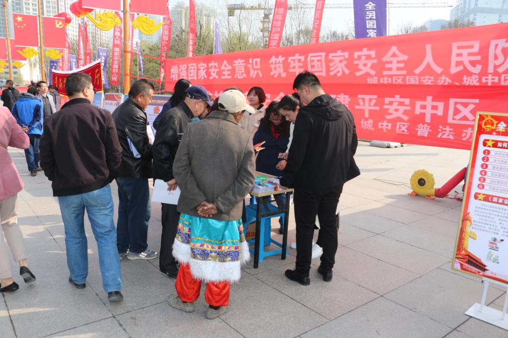 为进一步增强辖区群众的国家安全意识,推动全社会形成维护国家安全的强大合力,4月15日在第四个“全民国家安全教育日”,由城中区委政法委牵头,城中区普法办、区国安办、区防线办联合组织辖区各单位在中心广场开展以“坚持贯彻总体国家安全观,营造安全稳定的政治环境,着力防范化解重大风险,喜迎中华人民共和国成立70周年、青海和西宁解放70周年”为主题的法治宣传教育活动。