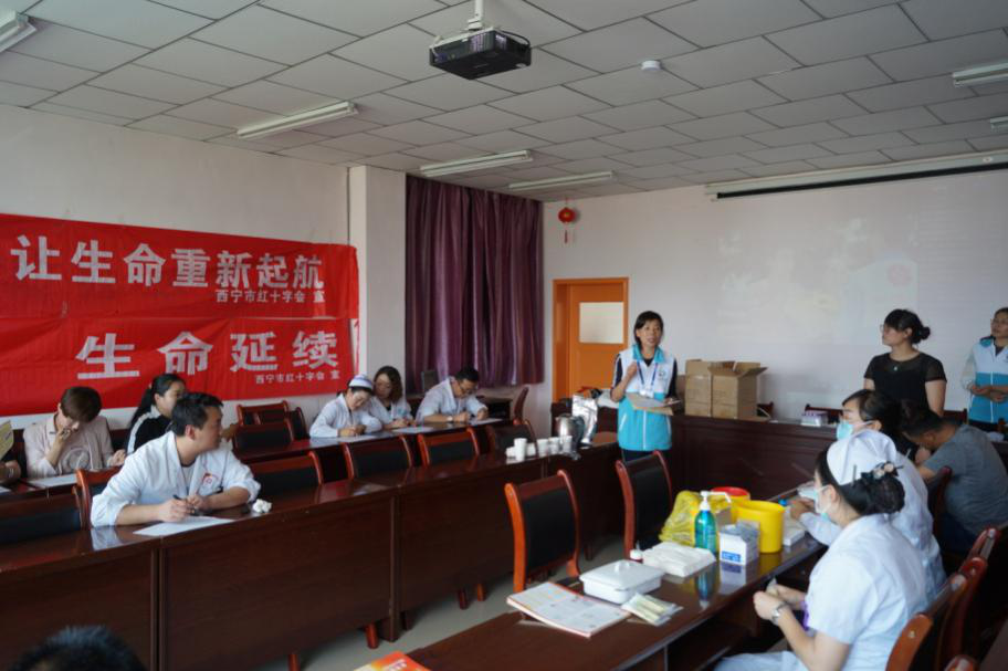 川东社区卫生服务中心三楼会议室内,自愿捐献造血干细胞的志愿者早早到达采集现场等候,认真观看捐献造血干细胞的公益宣传片和造血干细胞捐献流程科普宣传片。西宁市红十字会李会长用浅显易懂的语言讲解了捐献造血干细胞并不会对捐献者本身的健康造成损害和采集的具体流程、条件及重要意义,随后组织志愿者有序进行了填表、健康筛查、抽血、完成血样、发放荣誉证书的采集流程。参加采集的志愿者共计30人,其中大部分为医务工作者,成功采集血样22份,发放慰问品雨伞、毛巾和手推式扫把各30份。