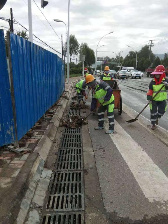 二是针对降雨天气的路面积水现象,中心及时安排工作人员在雨后对辖区雨水井及排污管道进行疏通清理,保障排污管道畅通无阻,应对降雨天气时减少路面积水及淤堵现象的发生。