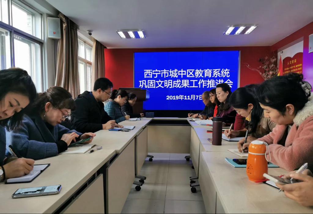 重视思想,统一行动,干出实效。召开西宁市城中区教育系统巩固文明成果工作推进会,组织各校一把手参会。明确创建全国文明城市是人民对美好生活的需要、是增量城市品质的重要载体、是提升转型发展竞争力的关键要素、是追赶超越的大势所需等思想内涵,进一步统一思想、提高站位。要求做到三个坚持:一要坚持系统推进,把创城工作作为学校各类创建工作的总统揽、总抓手、总龙头,其他创建工作要既体现独立性又要体现服从性;二要坚持融会贯通,将未成年人思想道德建设与创城工作紧密结合,让教育教学与创建工作在相互融合中共同提升学校的校园文明程度;三要坚持上下同责,各学校要抓好落实,各部门要协作发力,构建纵向到底,横向到边,责任到岗、到人的创建工作体系,形成整体推进效应。