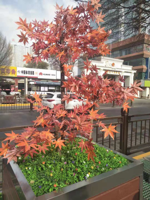 为保证城区道路整体景观效果良好,美化冬季街景,组织人员全面展开冬季绢花造景工作。一是在安排撤离花箱的同时,保留东、西大街、南关街、北门坡等主要街道花箱及花架,并利用仿真绢花进行装饰,在北门坡、大十字、西大街、莫家街花架及花箱内扦插的仿真花有一品红、绿植、向日葵、仙客来等,共计4430株;二是在南关街在原有的花箱内放置容易清理维修,美观大方,植物造型好看的仿真云松,共计161株;三是在西大街花箱放置仿真枫树,共计135株;这些色彩艳丽的绢花“生长”在冬季的西宁街头,给人们春意盎然的视觉享受,四是昆仑路、奉青路、南京路等绿地内种植的草花枯萎后及时清理,裸露地面将铺设绿色的仿真草坪,从而保证绿地冬季景观效果良好。