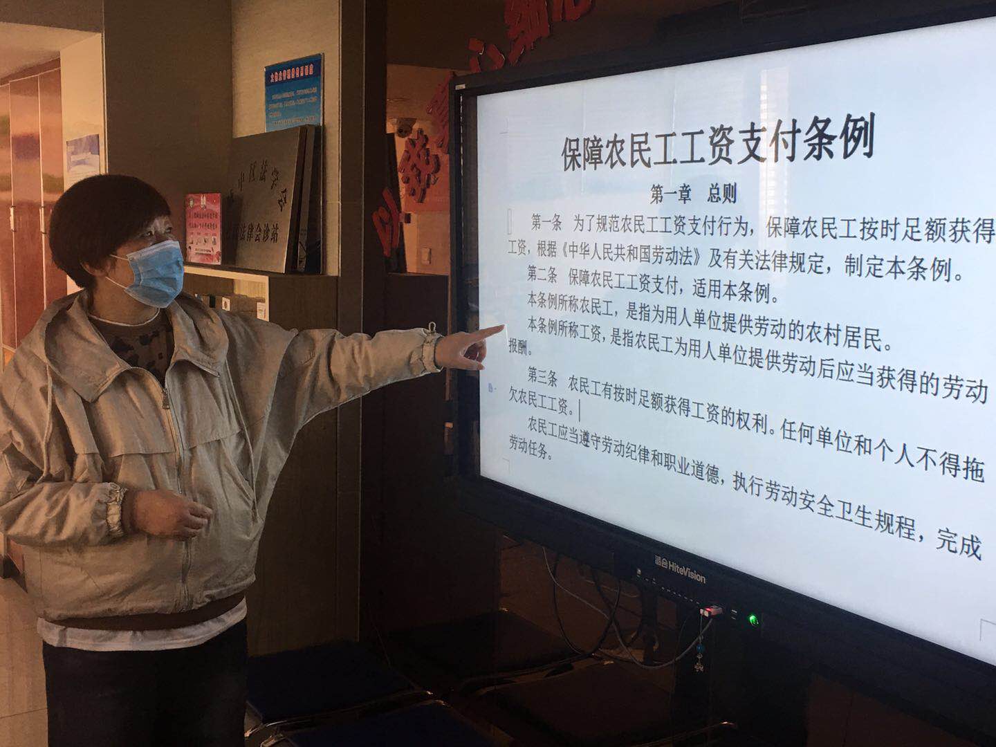 为实现“到2020年农民工工资基本无拖欠”,使广大农民工的合法权益得到充分有效维护,守护好社会公平正义和社会和谐稳定,助力广大人民群众通过劳动实现对美好生活的向往。近日,饮马街街道办事处联合所属社区积极开展《保障农民工工资支付条例》(以下简称《条例》)宣传活动,以确保《条例》2020年5月1日实施落实。
