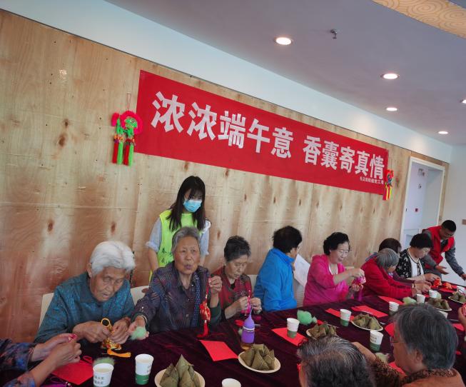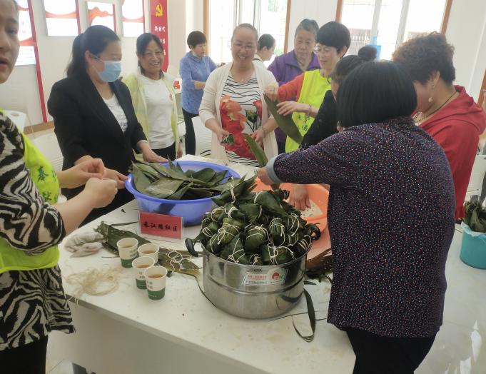 活动现场气氛热闹非凡,大家一边拉着家常聊天,一边快速地操纵着手中的米和线,将米、枣、粽叶包成各种形状的粽子,他们一边包,一边交流,不同形状的粽子里包裹着的是一样的爱心。做香包的阿姨们在老师的指导下“飞针走线”,不一会儿一个个五颜六色、造型独特的香包就呈现在我们的面前,阿姨们看着自己一针一线缝制的精美香包特别有成就感。