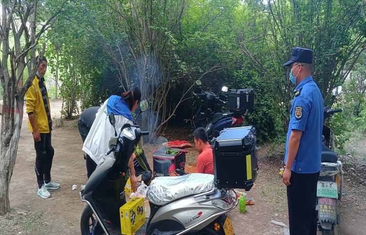 近日,我办结合辖区实际,协调配合城管科在河道进行日常河道巡查及夏季森林防火宣传,巡查发现附近居民在红星河道野炊,存在严重安全隐患,随即我办城管科的工作人员立即上前制止并进行劝离,并对其进行了防火安全教育。