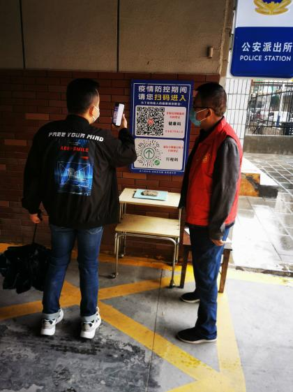 “先锋岗”安全守护。“哪里需要我就去哪里,关键时刻要发挥党员先锋模范作用。”实行居家办公管理以来,辖区党员志愿者们自觉担当起疫情防控的重任,纷纷响应社区号召,服从社区党组织安排,自觉佩戴党员徽章,主动亮明党员身份,前往辖区网格11个老旧楼院门岗开展防疫值守志愿服务。“您好,车子停一下,测量体温。”“您好,进入小区请扫场所码,出示您的健康码、行程码。”党员志愿者身穿红马甲、手持体温计,对每个进入小区的人员进行严格的测温验码,对外来人员身份进行信息登记,确保不漏一人,用自己的实际行动践行着共产党员的初心和使命,全力维护居民生命安全和身体健康。