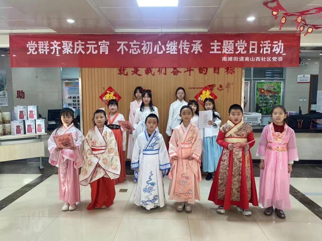 在中国传统的元宵佳节来临之际,为弘扬民族文化,营造良好的节日氛围,丰富辖区居民的文化生活,南滩街道南山西社区同老党员、孤寡老人、少年儿童共同开展了一场别开生面的“党群齐聚庆元宵 不忘初心继传承”主题党日活动,为辖区党员和居民精心烹制了一场别具匠心的“元宵”大餐。