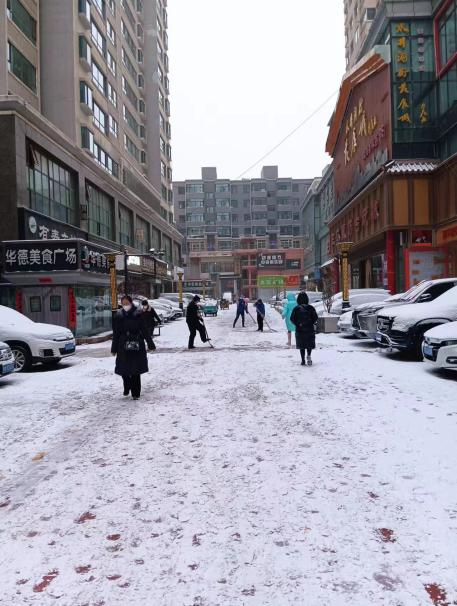 针对此次降雪,人民街街道办事处密切关注天气变化及道路情况,提前做好统筹协调工作,保障各类应急清雪物资充足,对辖区重要点位进行深度排查,确保雪后第一时间高效有序开展扫雪除冰工作。2月13日,大地一片银装素裹,人民街街街道迅速启动扫雪除冰应急预案,按照网格化扫雪除冰工作机制,积极组织街道机关干部、社区工作者、党员、物业人员、企业商户及各族群众一同加入到扫雪除冰工作中来。对主路旁人行便道、各生活小区、小街巷、商户门前开阔地等进行积雪清理。城管执法中队督促辖区商户、物业落实“门前六包”责任制,并对无责任人的区域进行清扫、对重要坡段配合抛撒融雪剂,确保无死角、无盲区,有力保障了行人、车辆的出行安全。