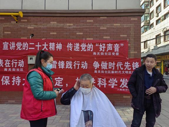 “天气好,出门顺便剪个头发,免费的”!南关街社区的王爷爷乐呵呵地和邻居拉着家常。春风送暖、爱心送情,为进一步弘扬雷锋精神,真诚服务居民,3月9日,人民街街道南关街社区党委组织辖区党员、志愿者在民主街十字路口开展让“小修小补”服务居民家门口行动,弘扬新时代雷锋精神、践行“全心全意为人民服务”宗旨,在辖区营造了浓厚的志愿服务氛围。