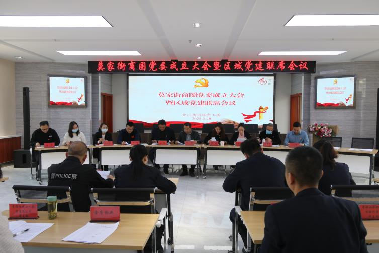 为深入贯彻党的二十大精神和全国、全省、全市城市基层党建引领基层治理工作电视电话会议精神,进一步深化拓展仓门街基层党建优势,优化营商环境,服务转型发展,促进区域治理,形成莫家街商圈党建整体效应。3月28日下午,仓门街街道党工委召开莫家街商圈党委成立大会暨区域党建联席会议,各社区党组织书记及副书记、“两新”组织党组织负责人、辖区联盟单位共同参加本次会议。